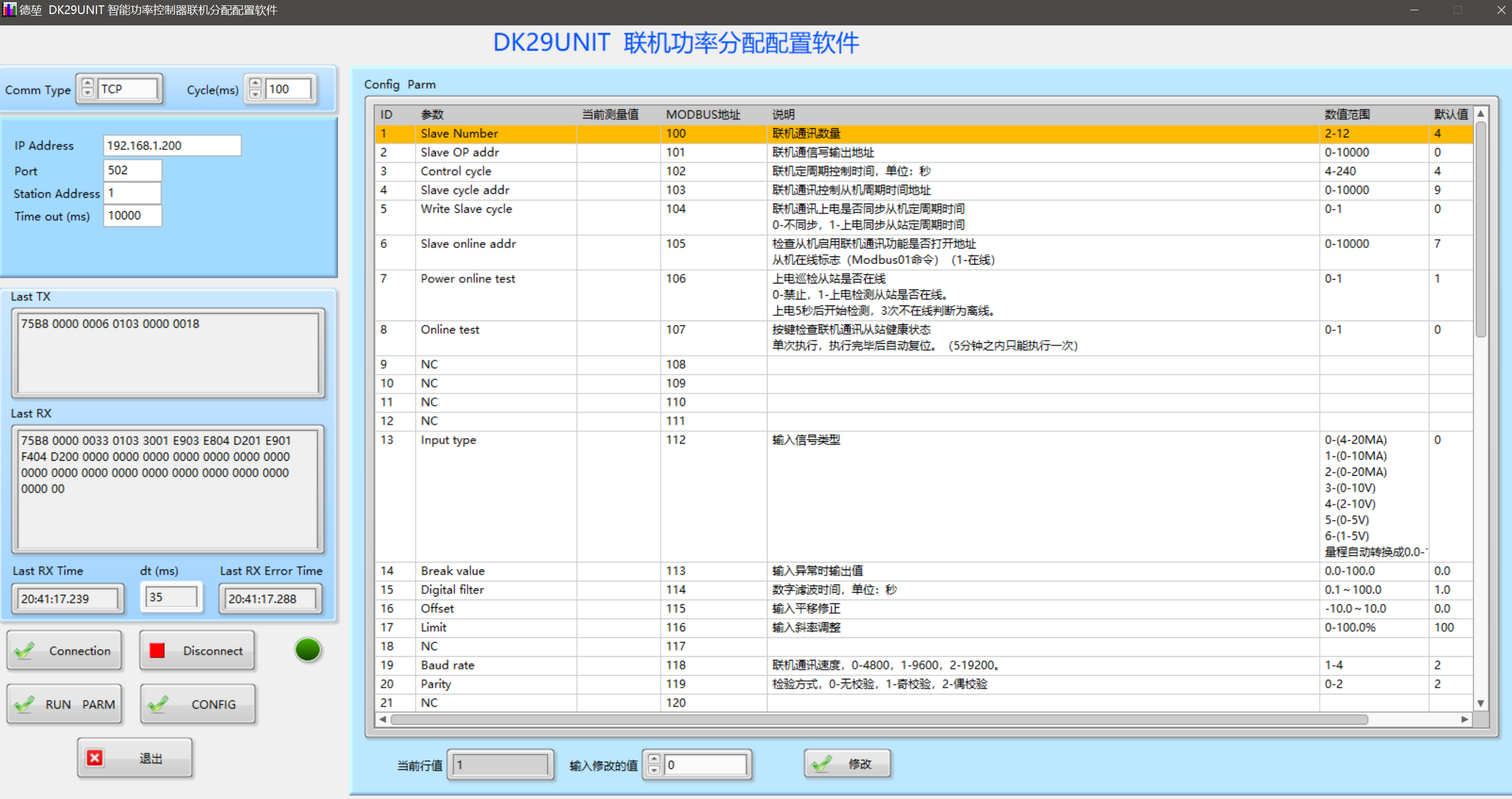 DK29UNIT联机功率分配控制器仪表配置软件